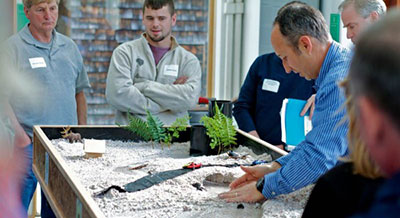 In 2011, Maine Audubon and partners launched Stream Smart, a program that trains contractors, landowners and other professionals responsible for road-stream crossings, on how to construct crossings that maintain fish and wildlife habitat while protecting roads and public safety. Since its start, the program has hosted workshops and fields trainings for over 1000 people across the state and reconnected hundreds of miles of stream habitat for wildlife. Stream Smart road crossings let the stream act like a stream and make the road invisible to the stream.