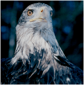 If you see an immature eagle, several head features allow ageing. First-year juveniles are dark colored especially on head feathers, beak color, and iris color. A second-year bird has buffy areas on its head and throat. By the third-year, head feathers are whitish except for a conspicuous dark eye stripe; also, the beak color and iris are yellowing.