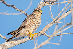 Since the late-1970s, merlin nests are increasingly encountered across Maine in varied settings ranging from offshore coastal islands to northern interior forests and mountains. They do not build a stick nest but use others built by crows and hawks. Small birds dominate their diet, but merlins are ambitious raptors that may tackle sandpipers, blue jays, and similar birds nearly its own size. The abundance of merlins across Maine peaks during the fall migration as large numbers from Canada head southward.