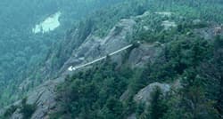 Cliffs where peregrines made a simple "scrape" in gravel substrate on ledges as a nest or used a remnant stick nest (often built by ravens) were abandoned. Ravens and other raptors occupied dramatic cliffs once ruled by peregrines or golden eagles. Long white streaks on a cliff or building sometimes serve as evidence of peregrine use.
