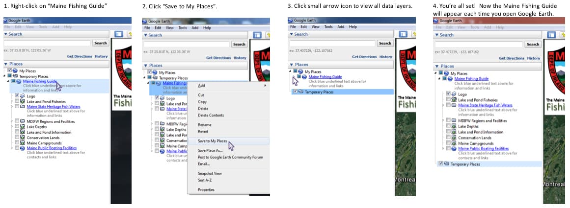Need help? Check out the Google Earth help docs. - Launch the Maine Fishing Guide Google Earth Layers