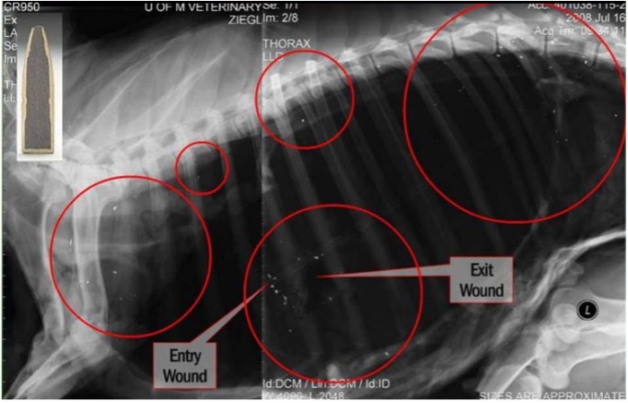 When an animal is killed using lead ammunition, parts of the carcass and gut pile are often left behind on the land. This carcass provides an appealing meal for scavenging wildlife. Many mammals like coyotes and foxes consume carcasses, however eagles, crows, ravens, and vultures are severely affected by consuming small lead fragments that are scattered throughout harvested animal remains that are left behind. Once consumed, a lead fragment in their highly acidic stomachs breaks down easier than other animals and enters into the bloodstream, causing neurological and motor impairments that can lead to death or long-term impairment within a matter of days, months, or years.
