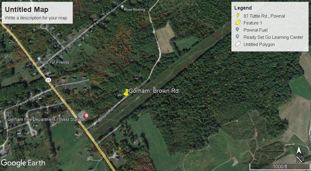 - Rust Farm, Gorham. Dow Road. 4/10 mile west of Route 25.