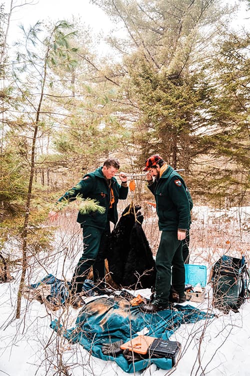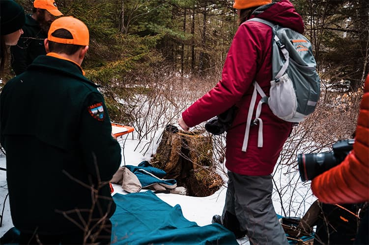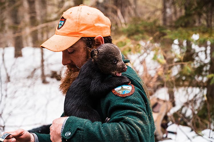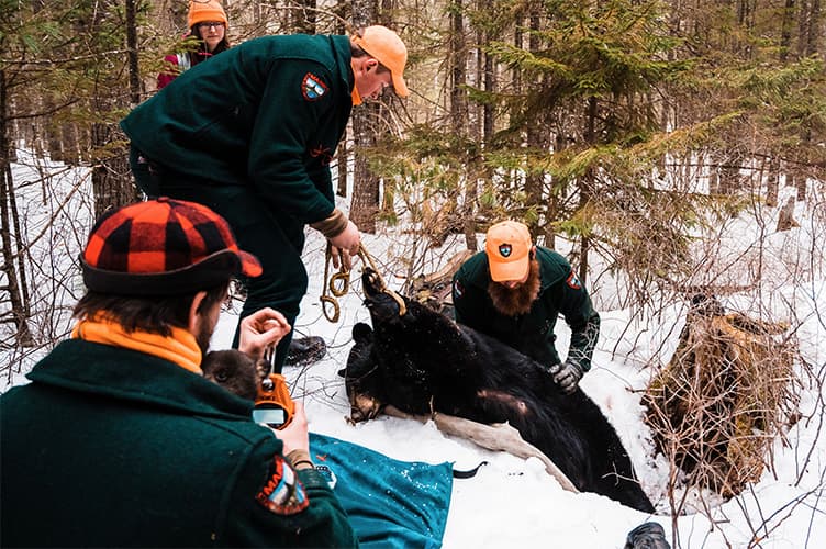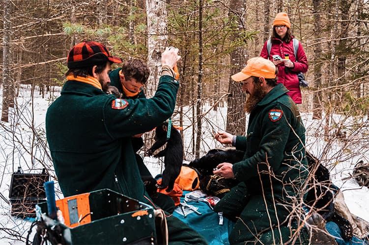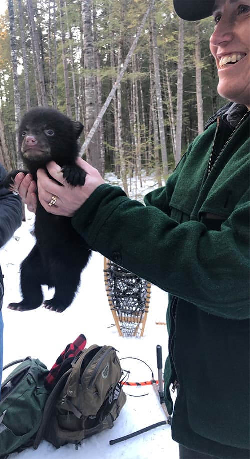 Katie follows black bear and Canada lynx biologist Jennifer Vashon deep into the woods to visit a bear den. Bear den visits are conducted late winter to monitor the health of female bears and their young cubs. In a follow-up interview, Katie and Jen chat about the den visit, how to avoid human-bear conflicts, and why Jen loves her job.