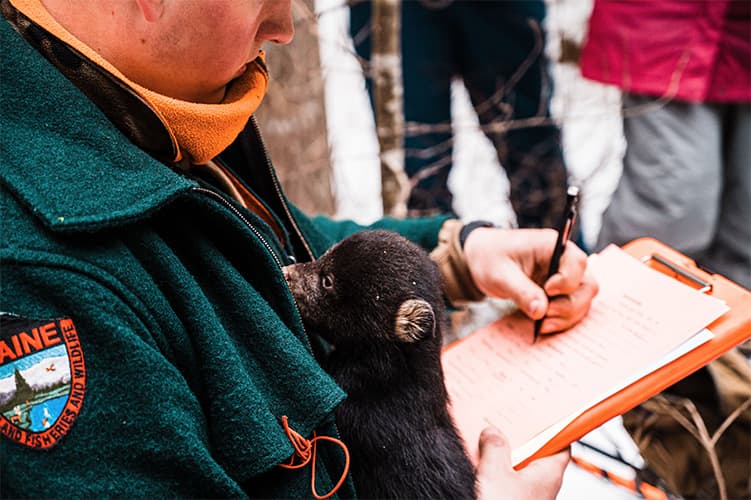 Maine is home to the largest population of black bears in the eastern United States and when natural food sources are scarce in the spring it sometimes leads them into backyards in search of an easy meal such as bird feeders, garbage, grills and pet foods.