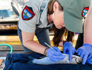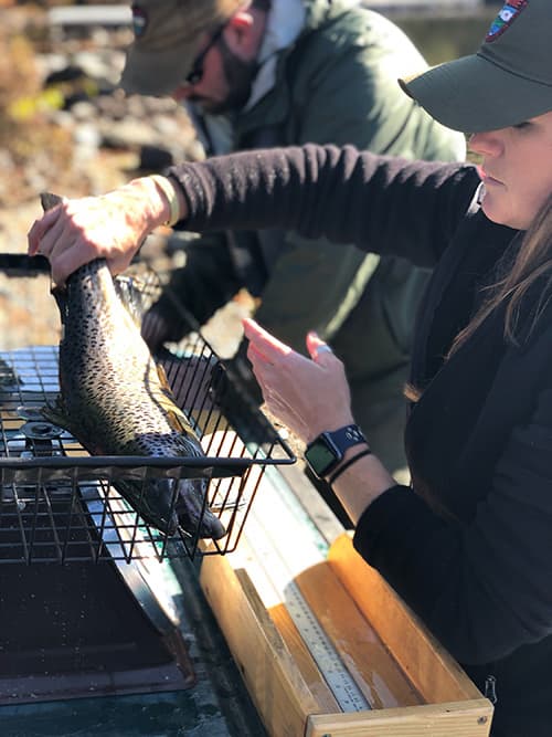 In this episode of Fish + Game Changers, Emily joins Fisheries Biologist Liz Thorndike on a tagging mission on Mooselookmeguntic Lake to learn more about the spawning behavior of wild brook trout and landlocked salmon.