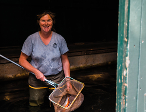 Katie chats with Fish Culturist Ashley O'Neal. Ashley describes her daily routine raising trout and splake at the MDIFW Governor Hill Fish Hatchery. Ashley explains why she finds the hands-on hatcheries work to be rewarding, despite originally pursuing a career in wildlife.
