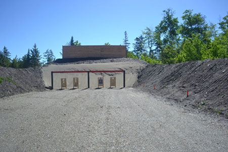 A view of the 100-yard rifle range that includes an additional 8 ft. backer on top of the 20 ft. firing berm. This design has allowed the range to have a reduced sound to the surrounding area and increased projectile containment on site. The “goal post” approach keeps the mind’s eye to the target area.