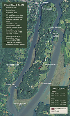 Swan Island, at the head of Merrymeeting Bay, welcomes hikers, campers, birders, anglers, wildlife watchers and explorers to its shores for an unforgettable Maine experience. Visitors may immerse themselves in history, surround themselves in nature and discover abundant wildlife. There is a kids-only trout fishing pond, a wildlife viewing tower and special food plots for wildlife. This State Wildlife Management Area preserves a part of history and a place in time. Come visit!