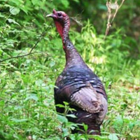 Wild turkeys have been reintroduced in Maine, and now number in the tens of thousands after being extirpated from the state in the late 1800's. Wild turkeys may appear under your bird feeders in winter, especially if the winters are severe. Learn more about wild turkeys from Maine Department of Inland Fisheries and Wildlife.